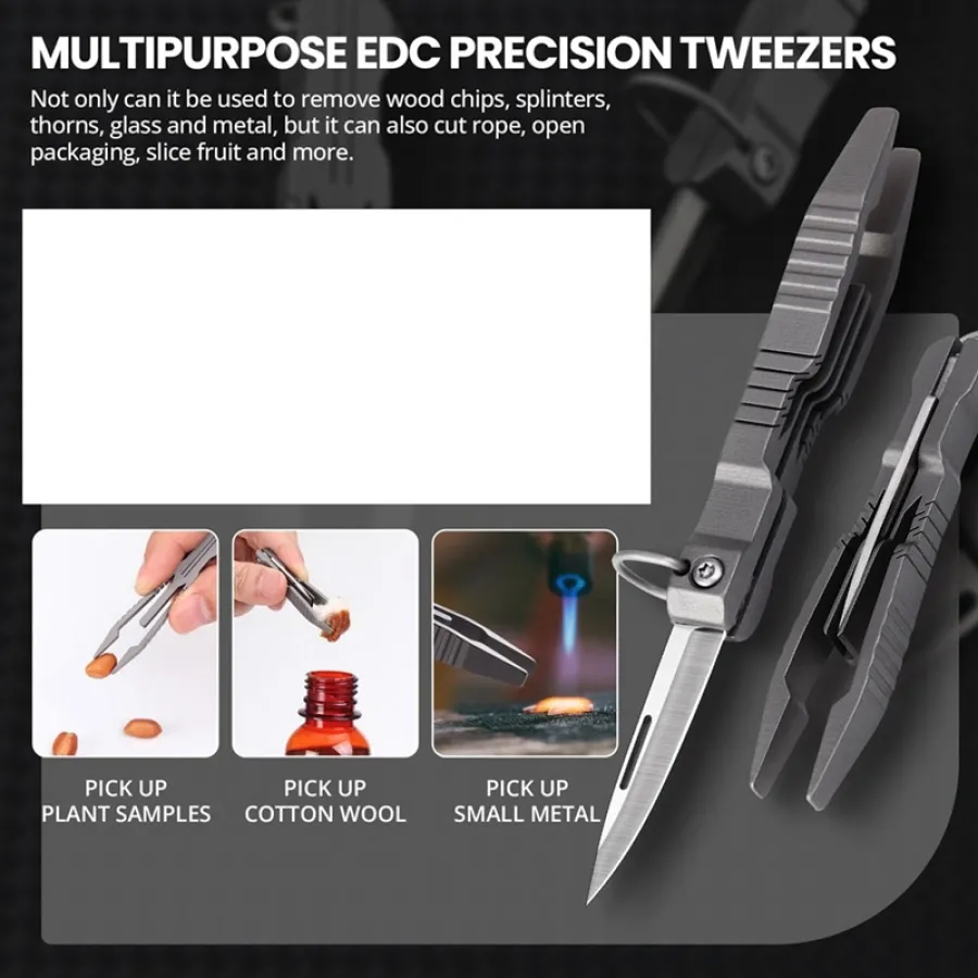 Tweezers Multitool, Precision Tweezer With Pocket Knife, 2 In 1 Titanium Tweezers For Craft,Soldering