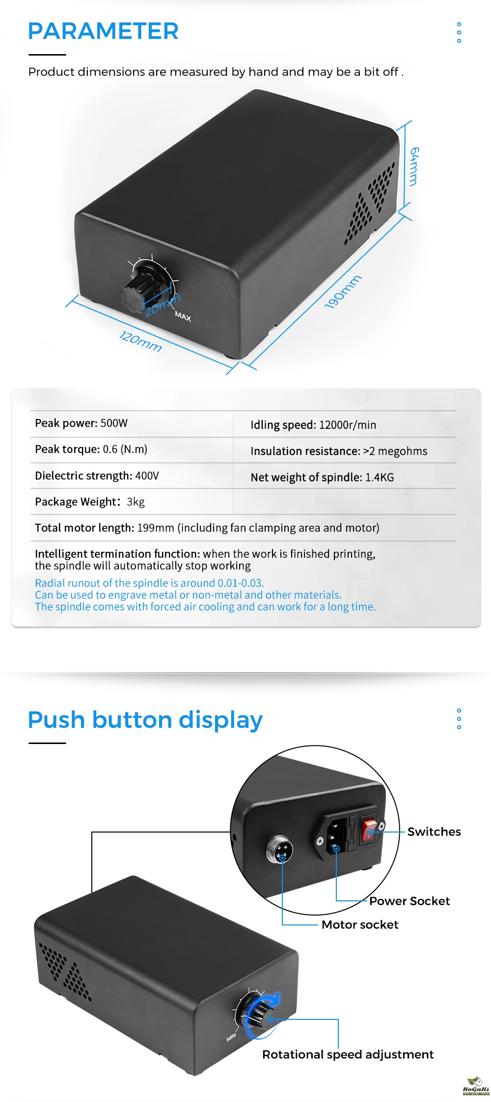 110V 500W Dc Spindle Set 0~110VDC Adjustable speed Governor Power Supply both 110VAC & 220VAC for Engraving machine