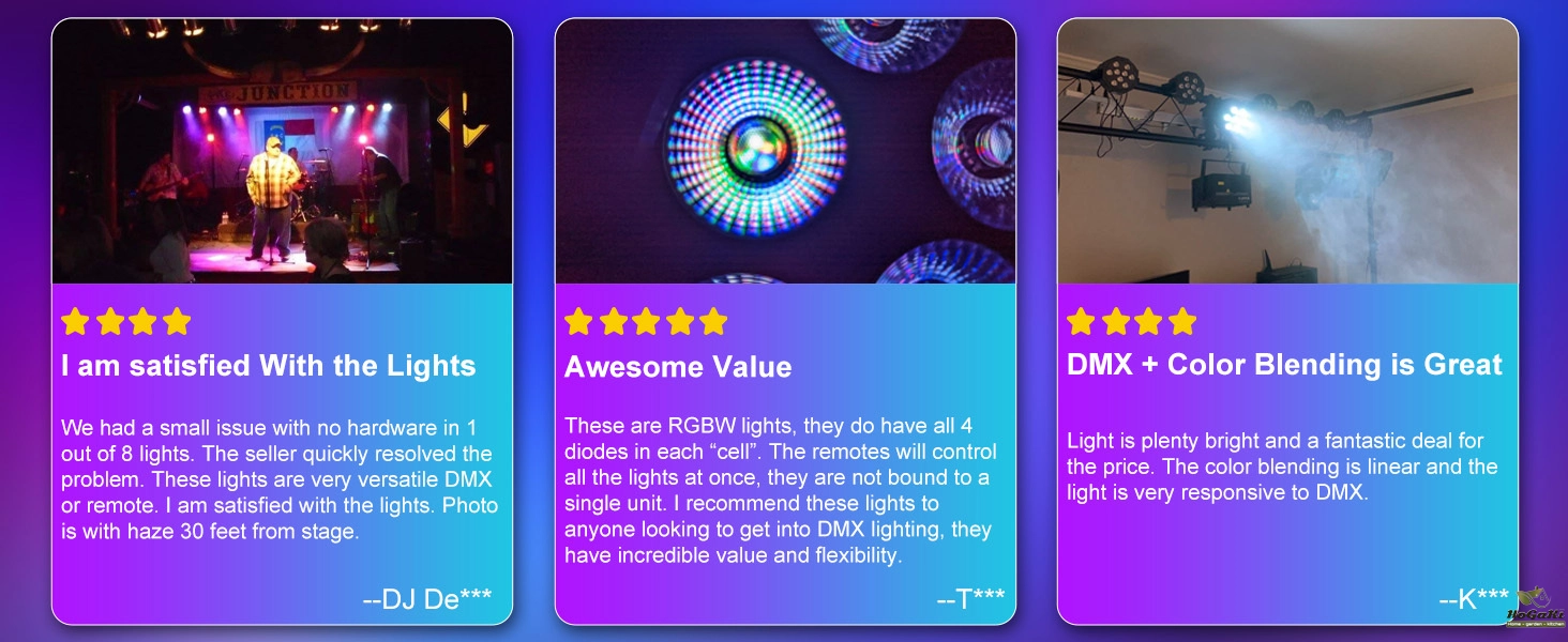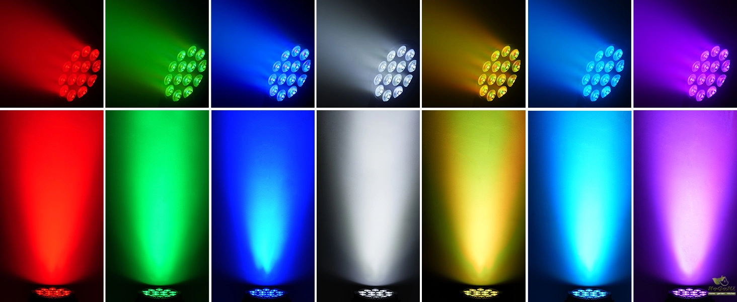 1. 14pcs 6W RGBW 4-in-1 light source to create infinite color mixing and rainbow effect, the built-in program can be controlled through the console, 0-100% linear dimming and light blocking function.