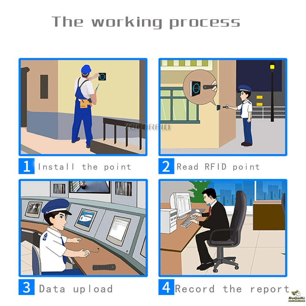 125KHZ Waterproof IP67 Rugger RFID Guard Tour Patrol System, Security Patrol Wandwith LED light +10 points