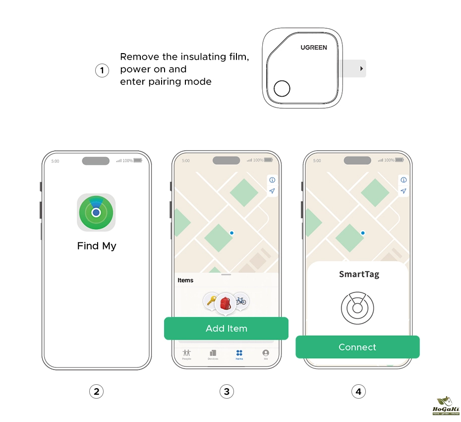 Use the pre-installed Find My app and add the tracker to the Items tab