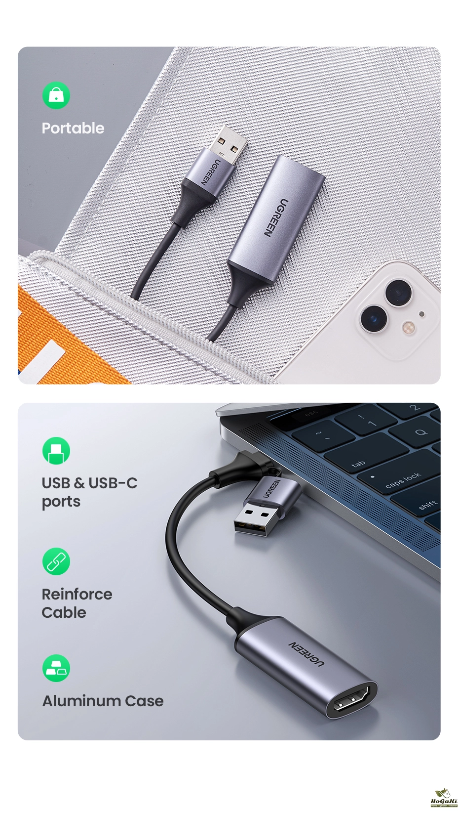 Ugreen video capture card is connected to the input device(signal source) through the HDMI port, and transmitted to the output device(display) with the USB-A/Type-C interface for living broadcast and capturing. It is widely used in HD acquisition, teaching recording, live streaming, medical imaging, online meetings, etc.