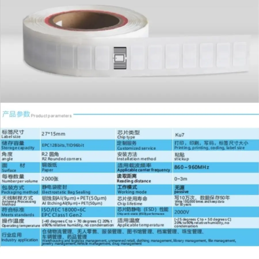 UHF RFID tag 18000-6C 860-960MHz PVC card Film covered printable NXP U8 chip Electronic label H3 Alien Long-Range 915 MHz 100PCS