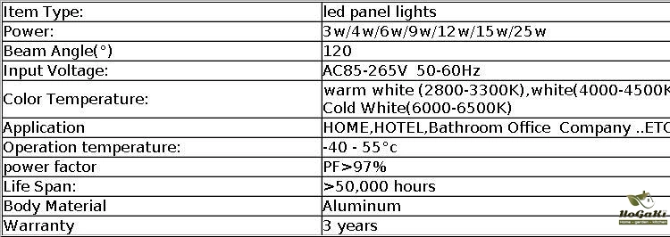 15W diameter size 190mm hole size 170mm