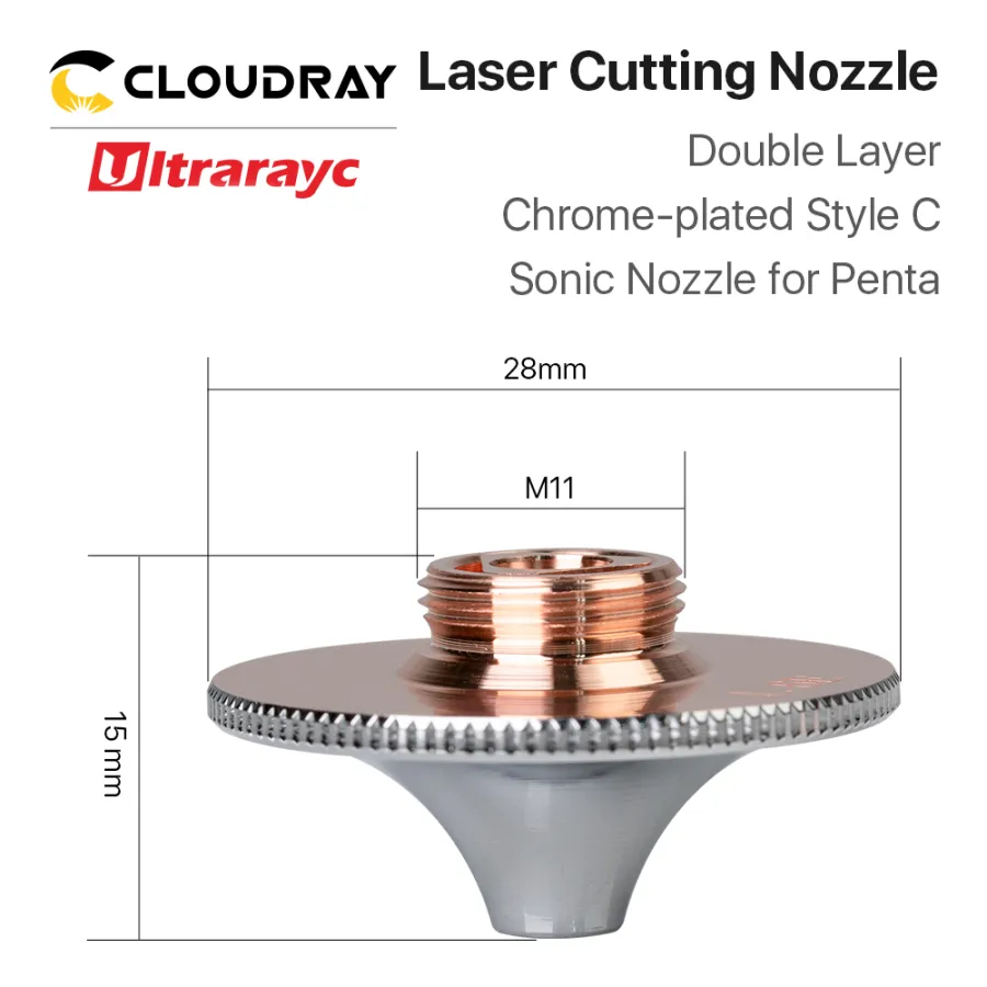 Ultrarayc Laser Nozzles Chrome-plated Double Layers D28 Caliber 1.2mm-1.6mm for Cutting Metal
