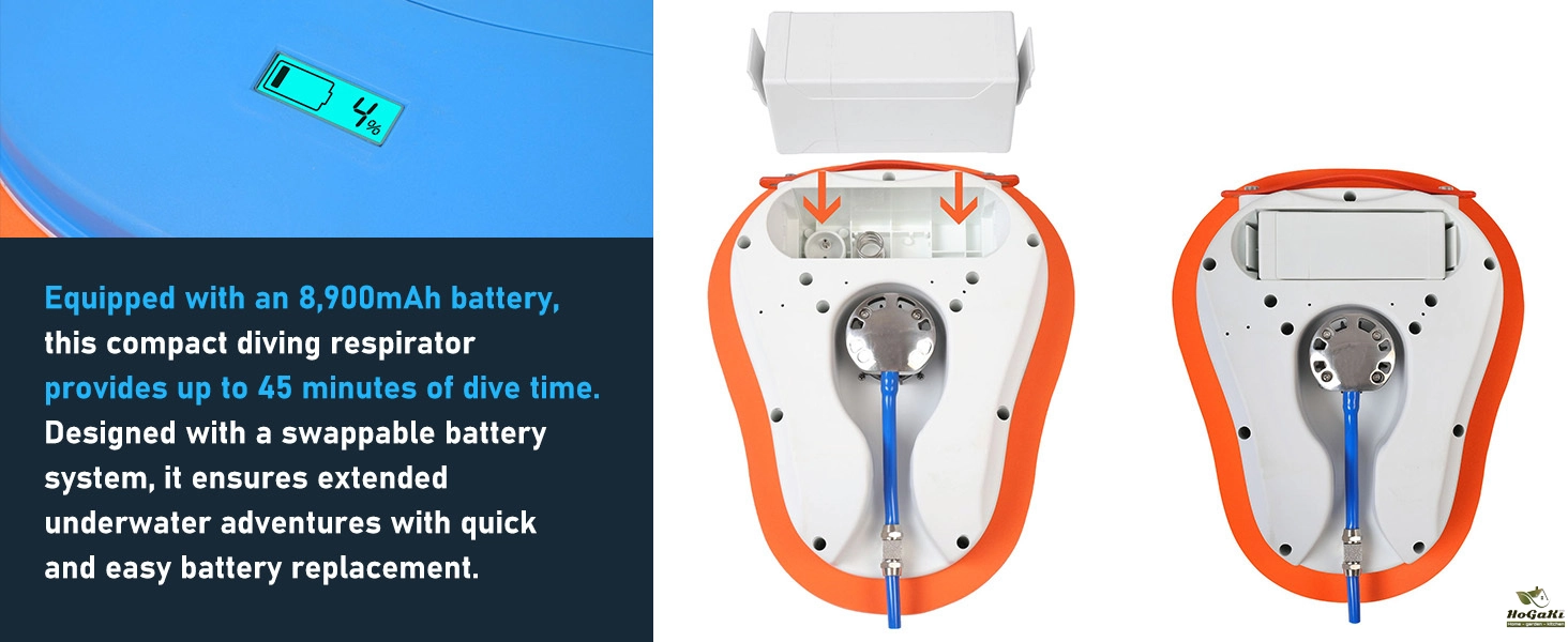 Extended Longevity: Our scuba device offers up to 1 hour of continuous operation underwater. This eliminates the need for cumbersome oxygen cylinders and ensures convenient, uninterrupted dives.