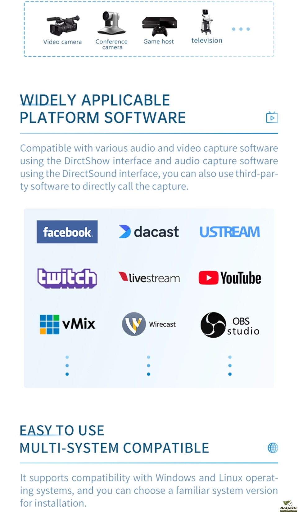 Compatible software  | Vmix,Wirecast,OBS,VJ,Xsplit,Windows Media Encoder, ,Adobe Flash Media Live Encoder, Real Producer Plus, VLC, AMCAP etc.  |