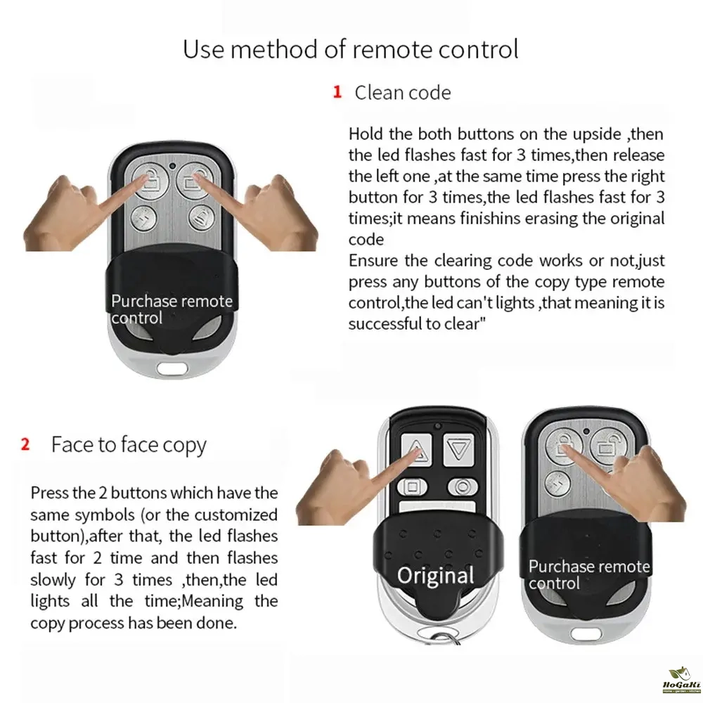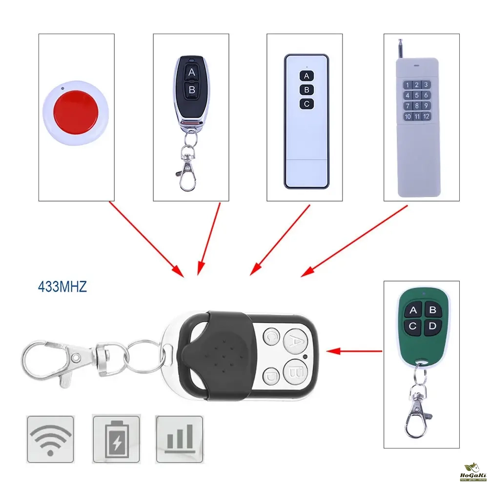 With this remote control, you can control all 433MHz fixed code key fobs.