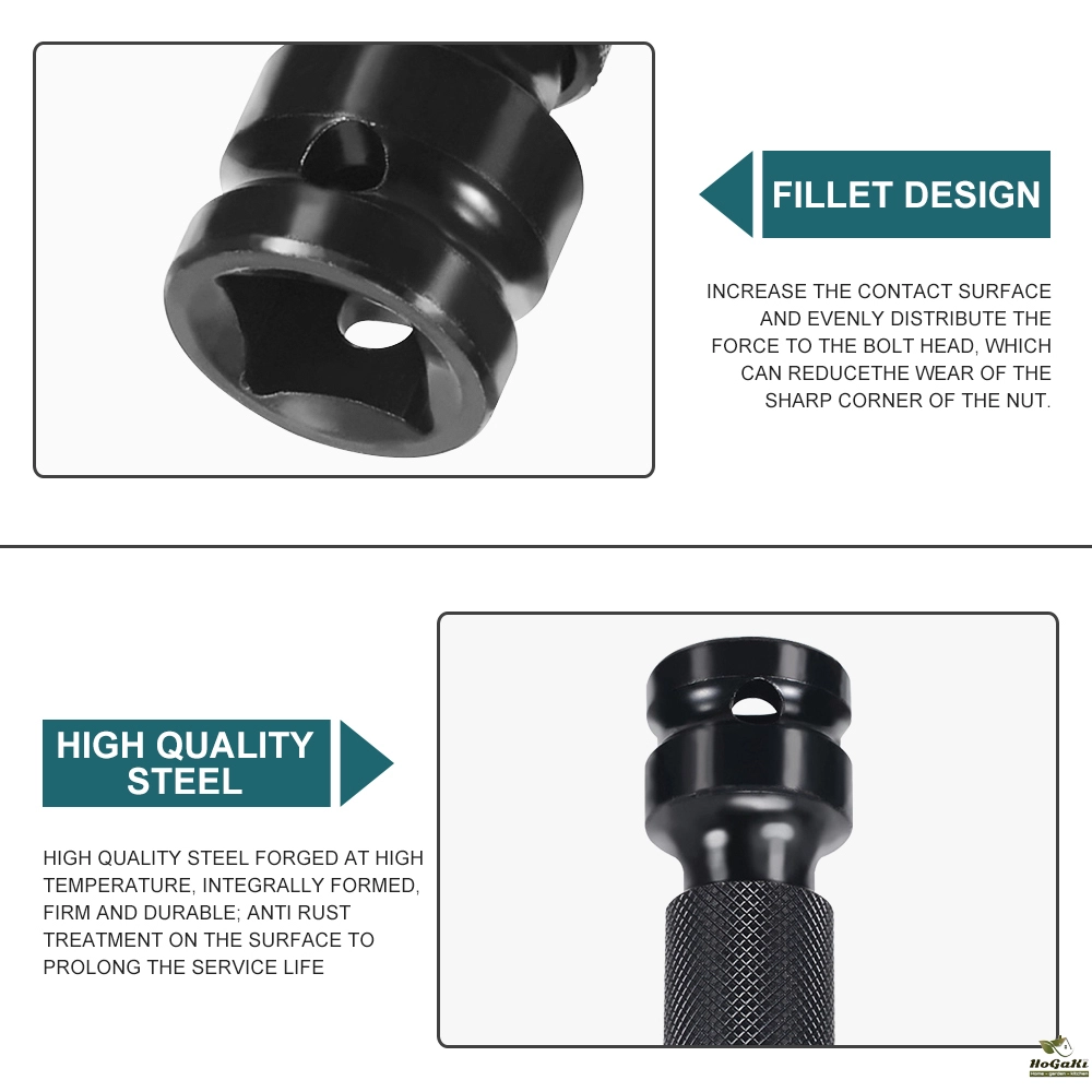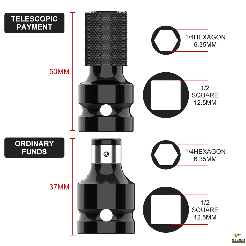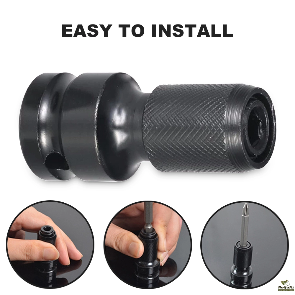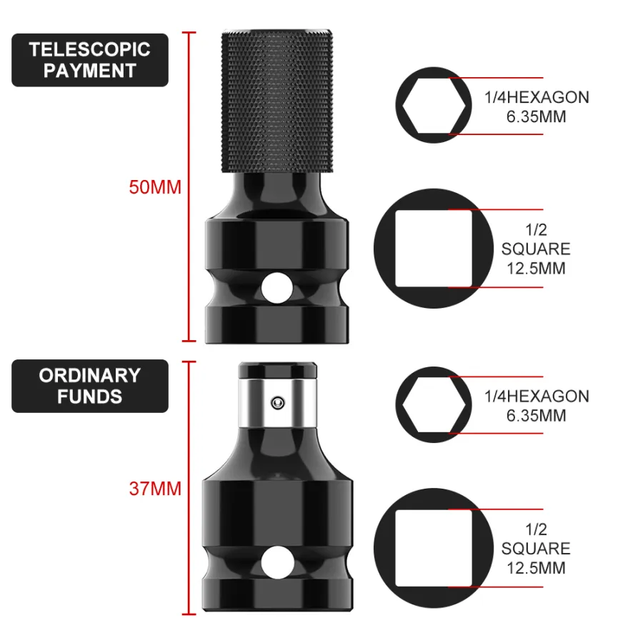 3.Quick Release Design: 1/2" square female to 1/4" Hex female socket adapter.