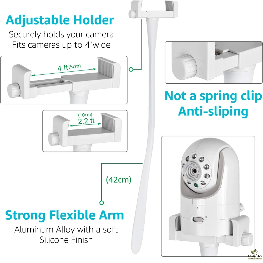Baby Monitor Holder White Flexible Silicon Baby Camera Bracket No Drilling Crib Cradle Rod Hose Holder Adjustable Twist Mounting
