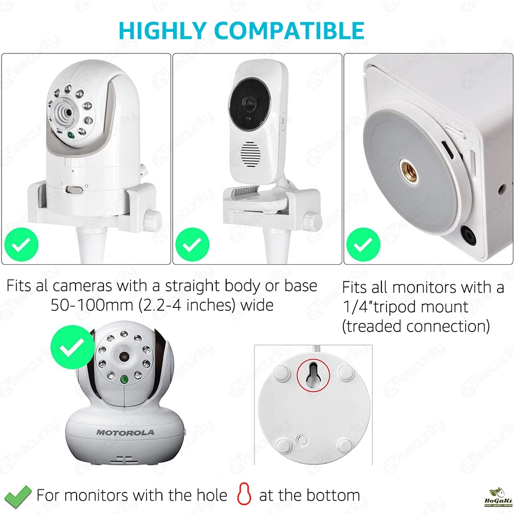 ●Universal Baby Monitor Holder: This universal white monitor stand is compatible with most baby monitors including infant optics and works as a nanit stand. This baby monitor crib mount arm can be connected directly to baby monitors with a 1/4" thread connection on the bottom or use the universal base provided.