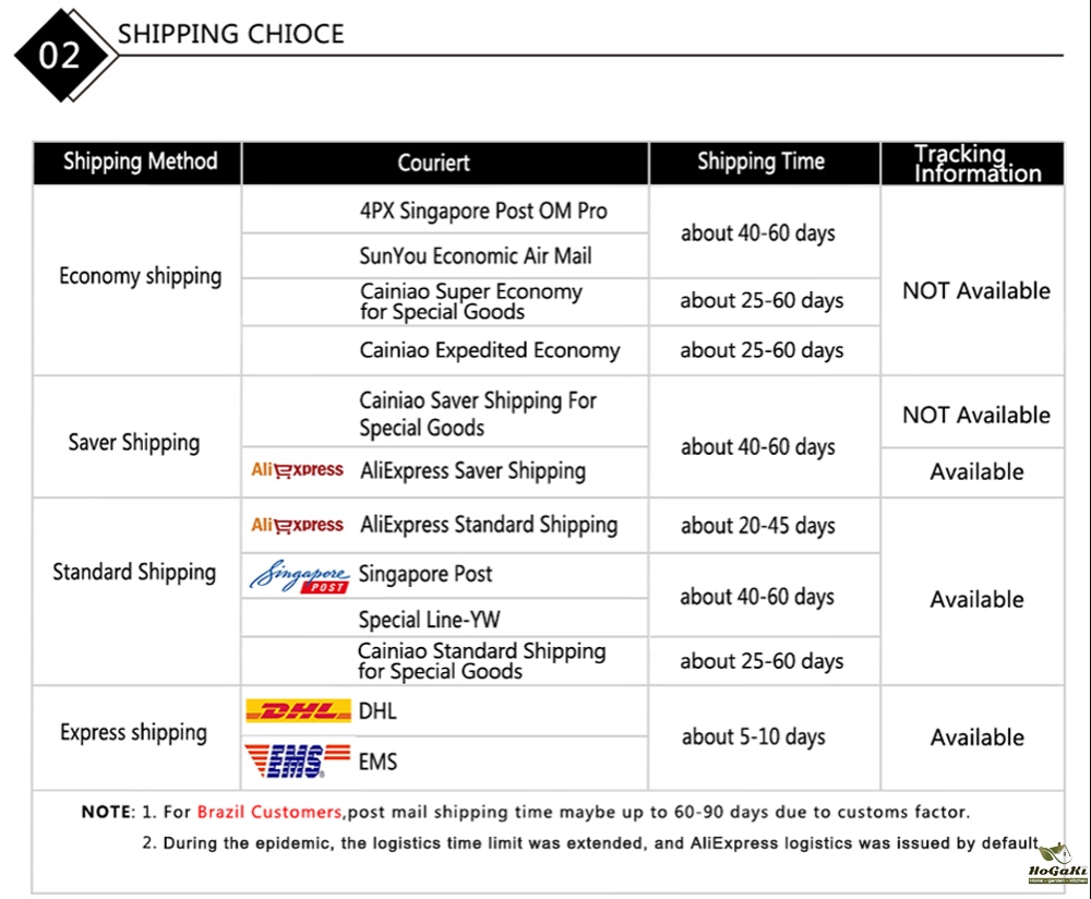 If you can't find the estimated delivery time on the product detail page, you can look at the following table for reference.