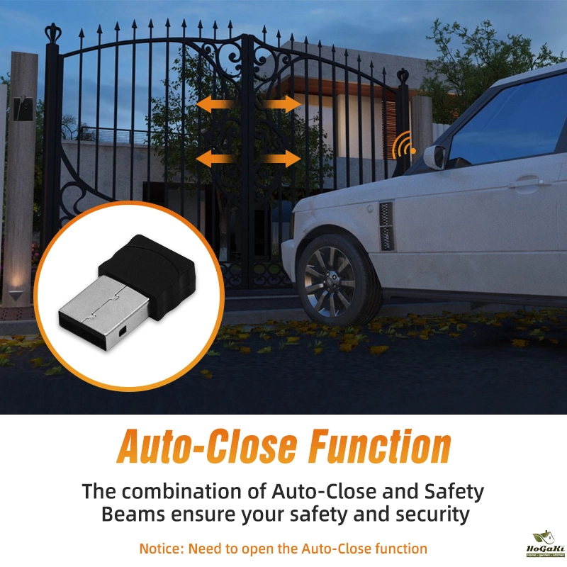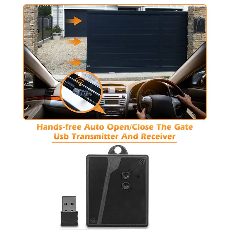 This receiver and USB plug set can be used for sliding gate motor, swimming gate motor, garage door and boom barrier. People can install the receiver into their gate motor, and match the code for the receiver and the USB plug. When people drive their car with USB plug inserted into the usb charging port , the door will be open automatically within 10 meters. The door will close automatically after the car entering into the gate if the gate motor has automatic close function.