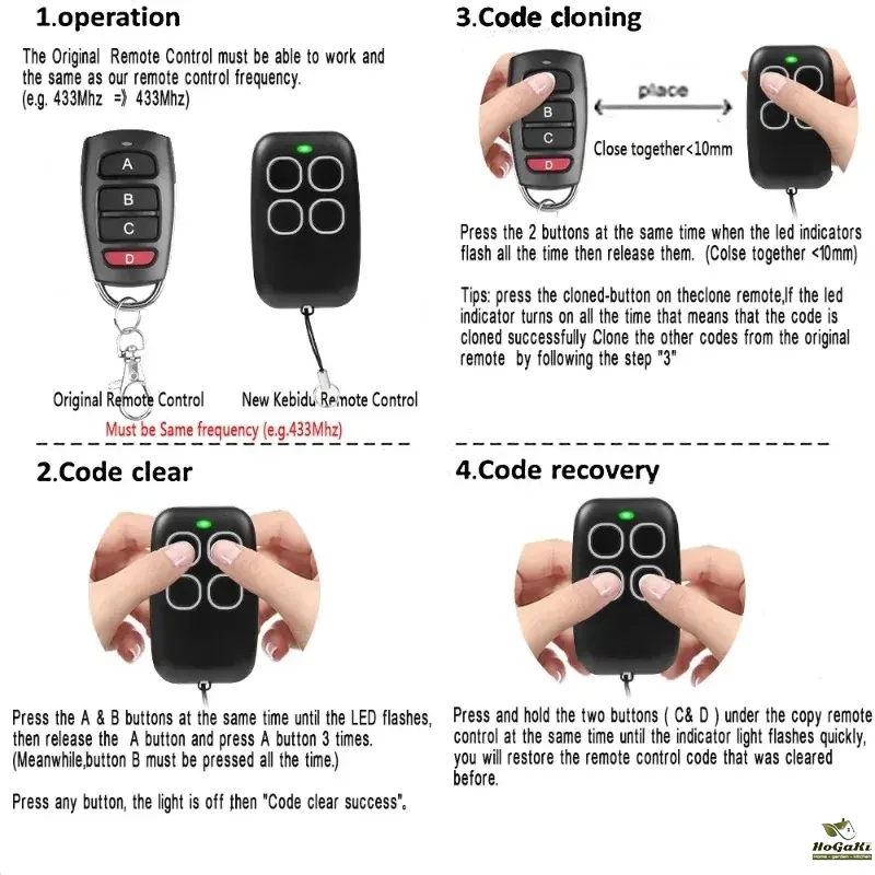 • Universal Duplicator :This garage remote controller is a universal duplicator, meaning it can clone any command without the need for programming. It's perfect for those who want a hassle-free automation solution.