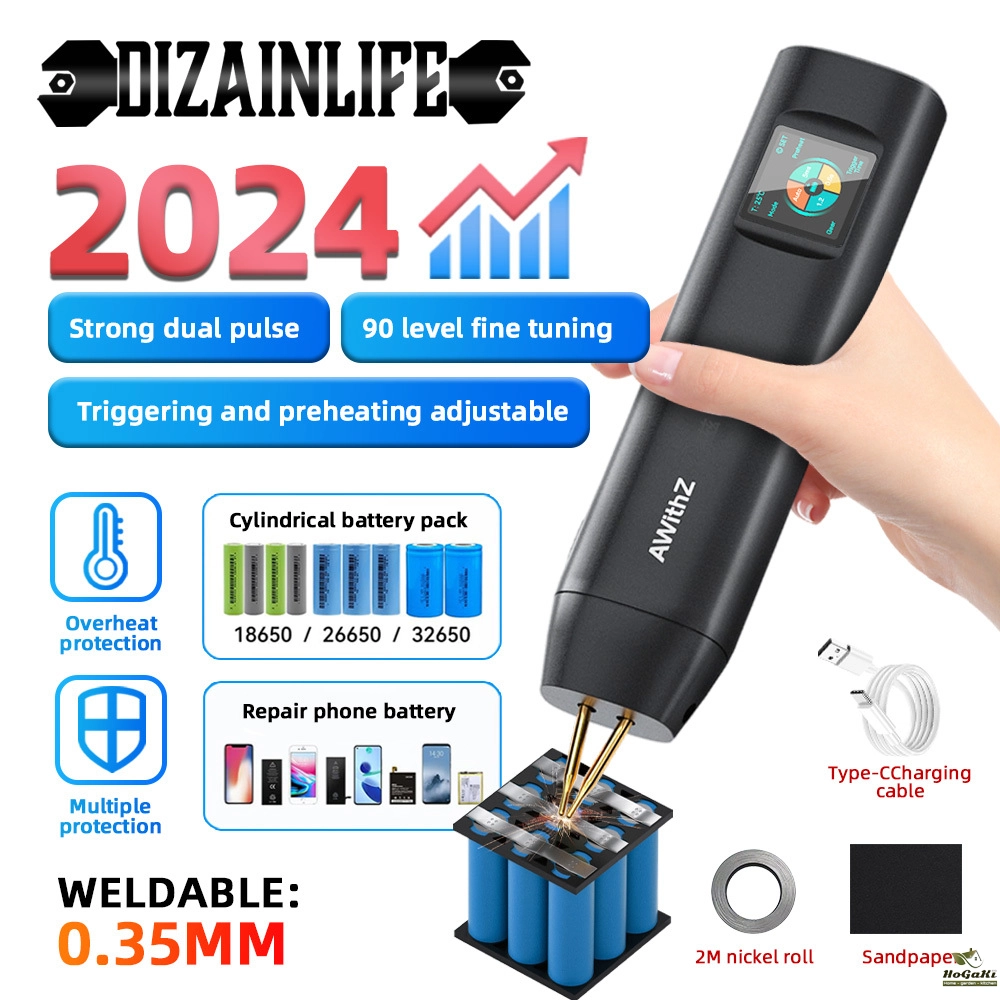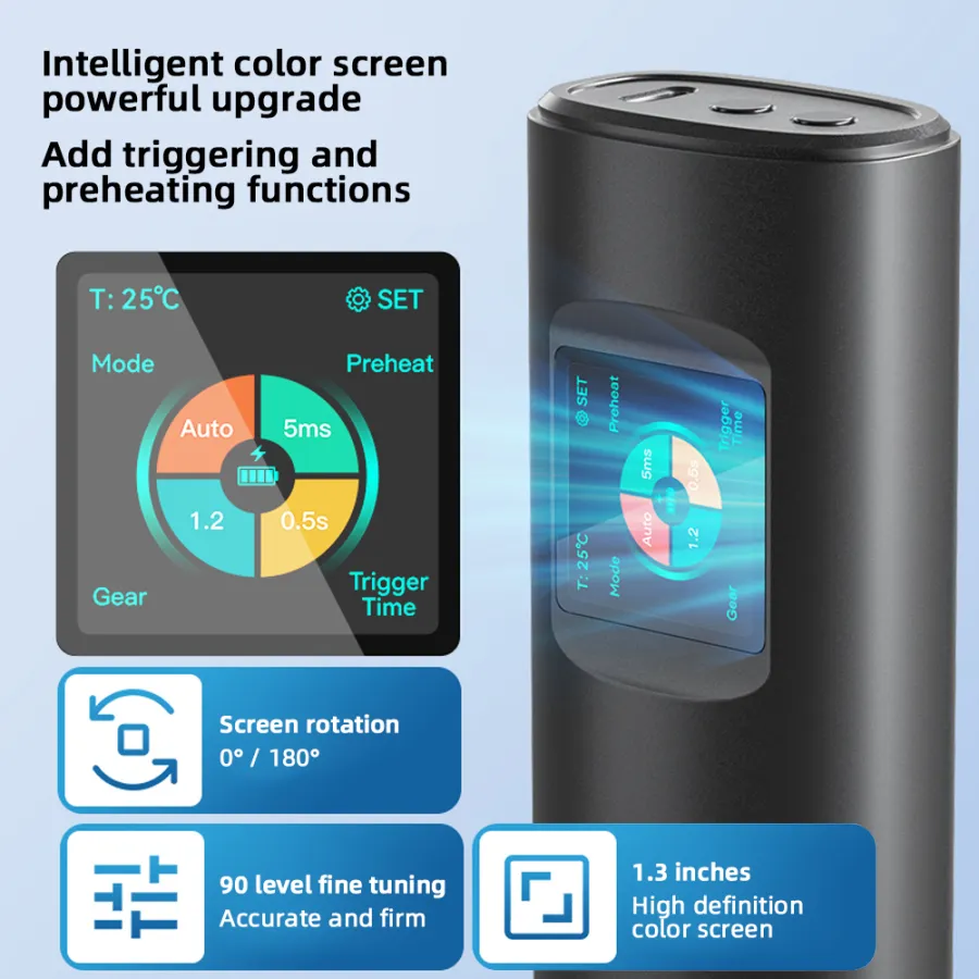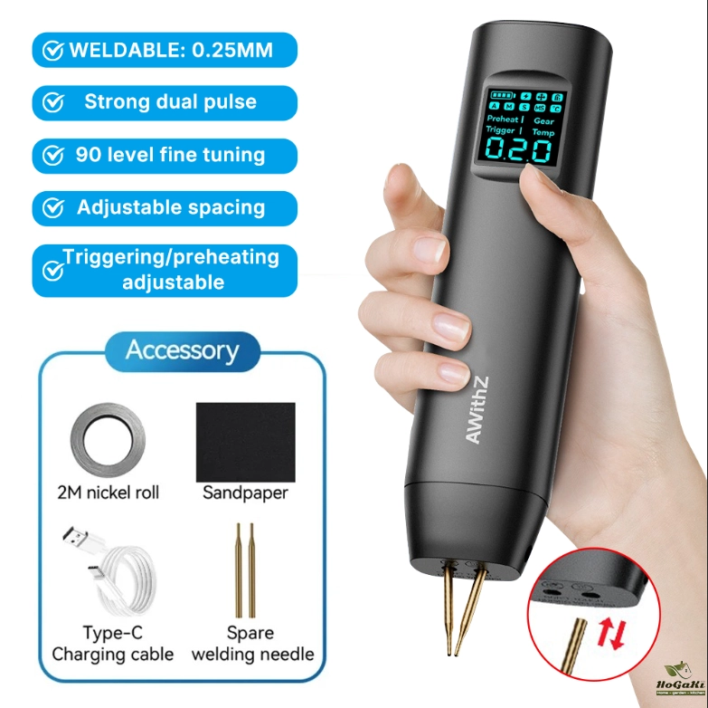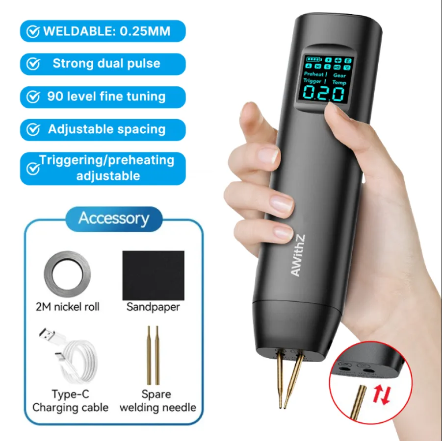 2-in-1 spot welding pen- a handheld spot welding machine that does not require additional spot welding pens. It is easy to carry around and go anywhere. It combines the built-in power supply and soldering pen into one, allowing for easy soldering without the need for an external soldering pen.