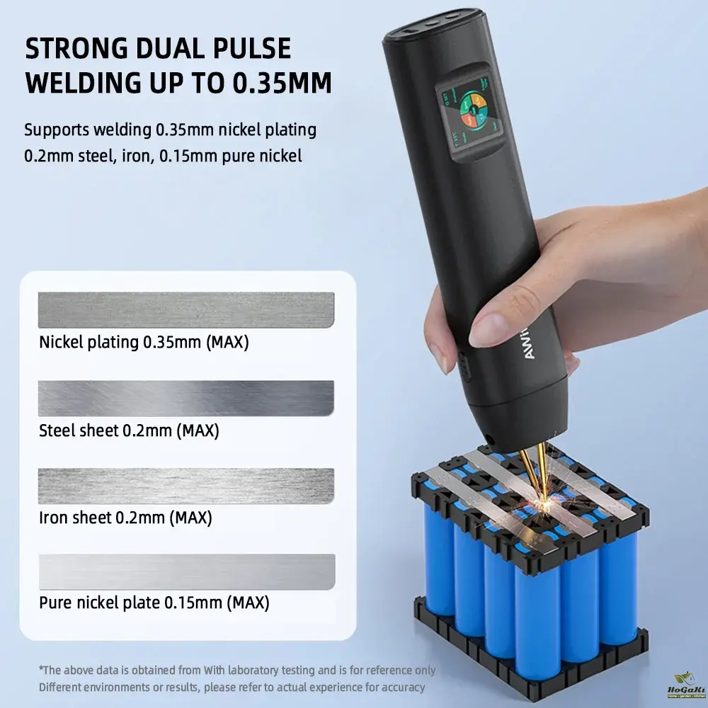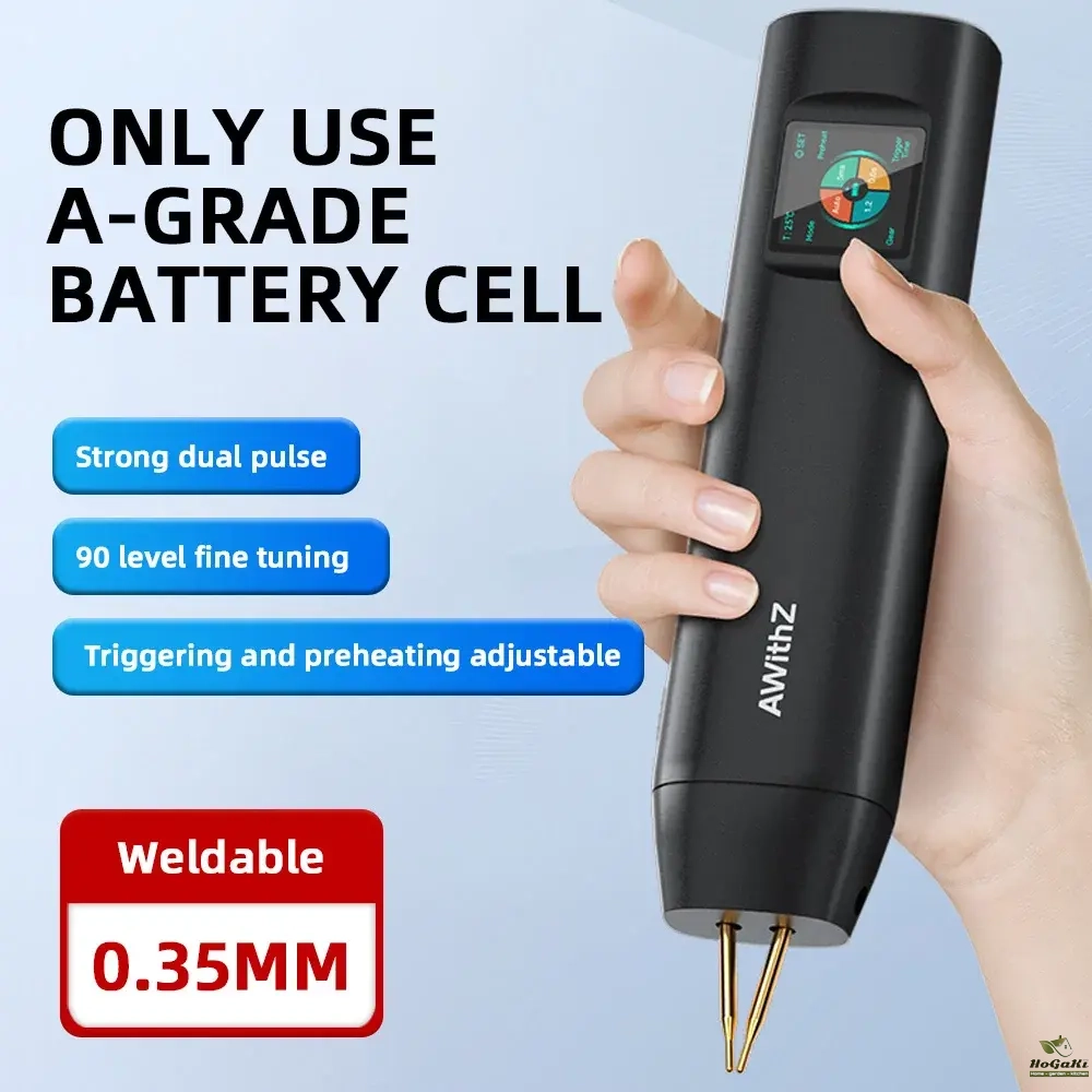 2-in-1 spot welding pen- a handheld spot welding machine that does not require additional spot welding pens. It is easy to carry around and go anywhere. It combines the built-in power supply and soldering pen into one, allowing for easy soldering without the need for an external soldering pen.