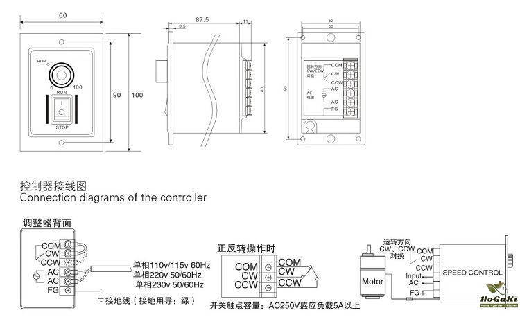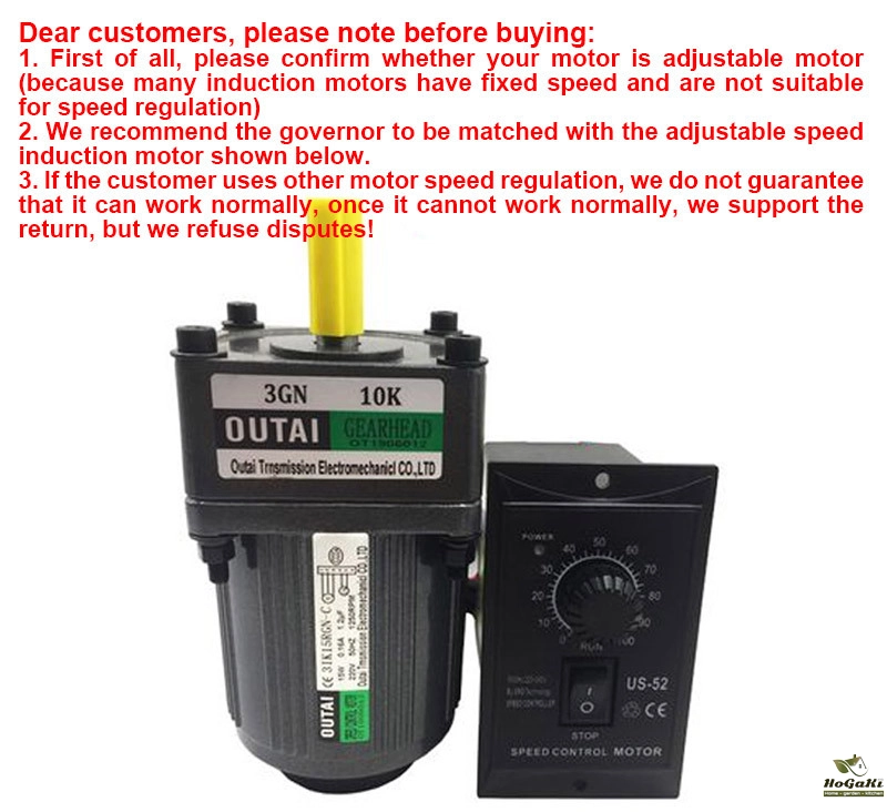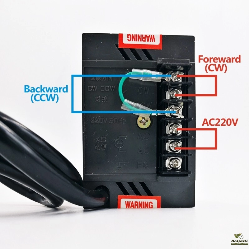 Corotation/ Reverse Option, connect CW and COM is corotation, Connect CW and CCW is option. Green LED indicator, 6 terminals, on/ off switch for controlling, the knob switch for adjust the speed.Used for Machine Tools, Textile Machinery, Conveying Machine, Printing Mechanism,Food Machinery, Vending Machine, Packing Machinery, Gumming Machine, etc. It is not suitable for US users.