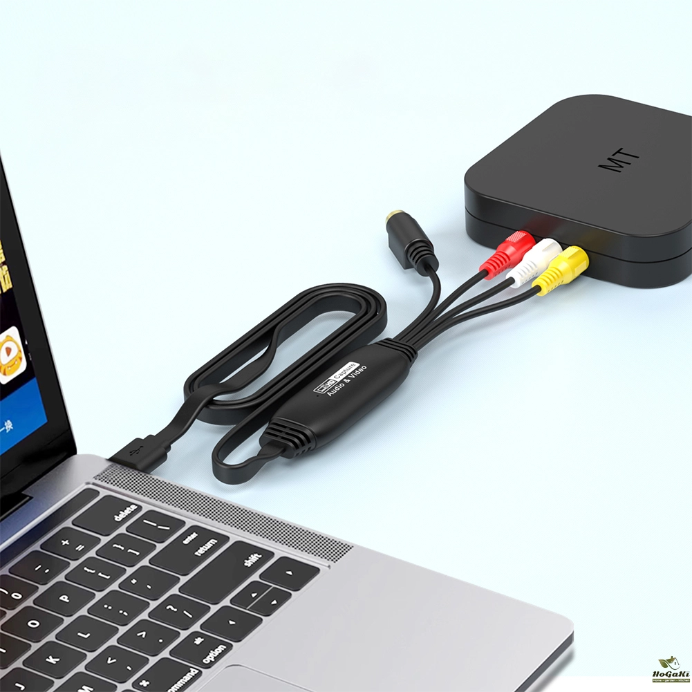 1. Versatile Video Conversion: This USB video capture card can transfer video and audio from devices like camcorders, gaming consoles, DV machines, surveillance cameras, DVDs, TV boxes, and medical equipment via AV input to a PC or . It's widely used for applications such as educational live streaming, online meetings, and game recording. Specification: Origin: Mainland China Color: Black Video format: NTSC/PAL Interface: Red and white RCA audio interface, yellow RCA video interface, S- video interface Function: Support audio and video acquisition, recording and playback Cable length: 1m Compatibility: Compatible with USB1.1 mode, compatible with NTSC/compatible with PAL video format Support output mode: YUV422 and MJPEG Compatible system: compatible with Windows 7/8.1/10/11, for Android, compatible with OS, compatible with Linux system Support maximum output resolution: 1920*1080 30HZ, and backward compatibility Product size: 80.00x26.40x15.00mm/3.15x1.04x0.59inch