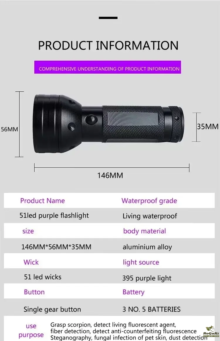 The strong Aluminum alloy body makes this product durable and long lasting, and the large head with 51 LED makes this flashlight brighter than others products.