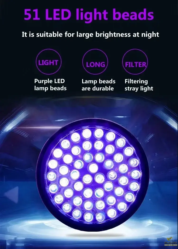 High quality Black Light UV Light 51LED 21LED 12LED UV Light 395-400nm LED UV Flashlight torch light lamp safety UV detection