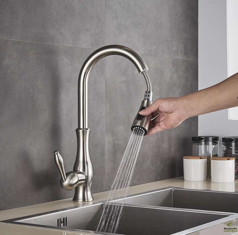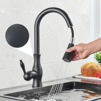 Matte Black Kitchen Sink Faucet One Handle Spring Hot and Cold Water Tap Deck Mounted Bathroom Chrome Kitchen Crane