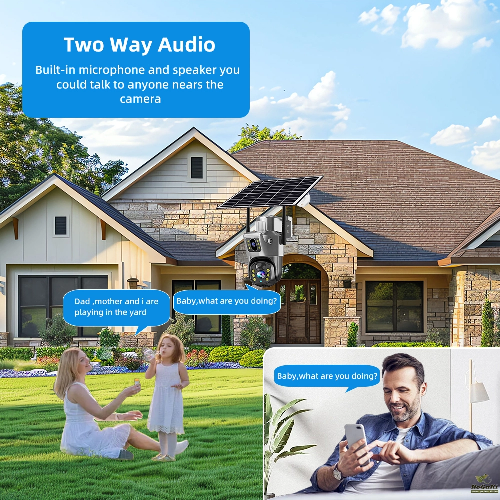 This Solar Camera Built-in microphone and speaker, You could talk to anyone nears the camera.