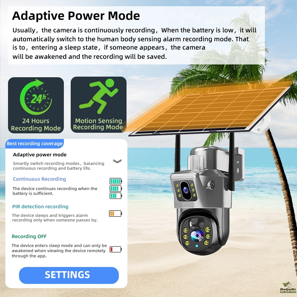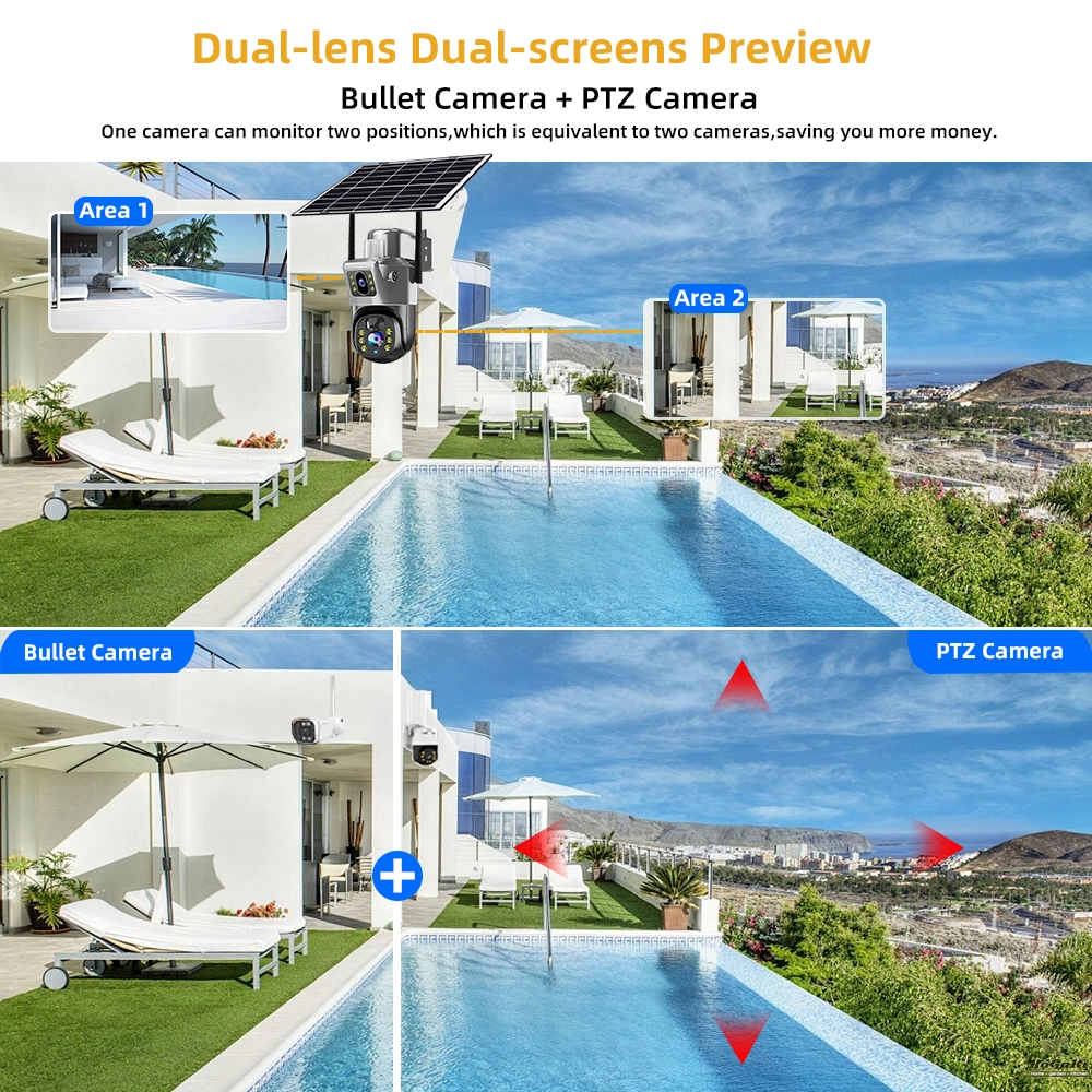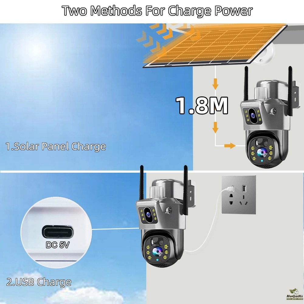 The camera can be detached with a large capacity battery, And solar panel is converted into energy by absorption and heat absorption to power the battery without connecting, the power supply easy to navigate.