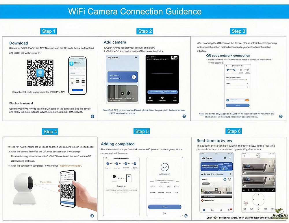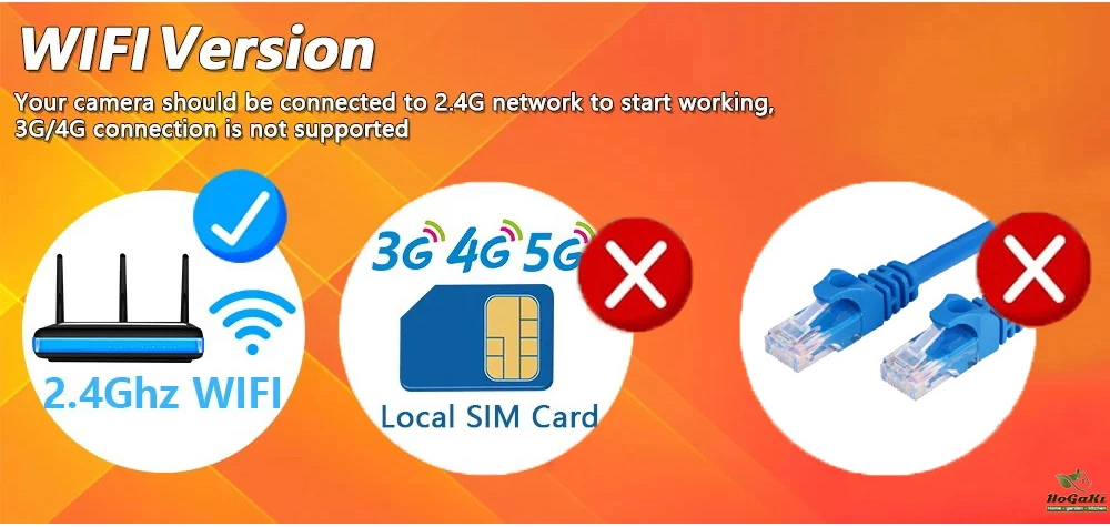 1. WiFi version camera supports 2.4GHz WiFi (not support 5Ghz);