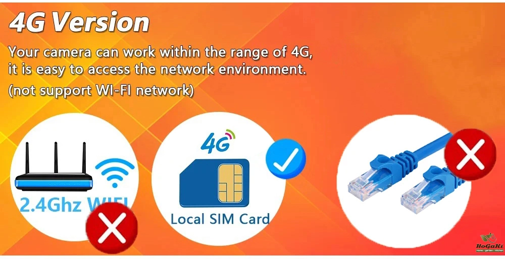 2. 4G version camera supports 4G network via 4G sim card (not support WiFi).