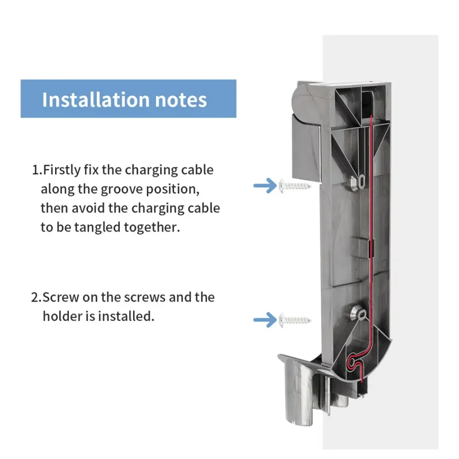 2.Charging Station:Dock to hold your vacuum cleaner and accessories, and wrap the wire behind the bracket for a neat and tidy look