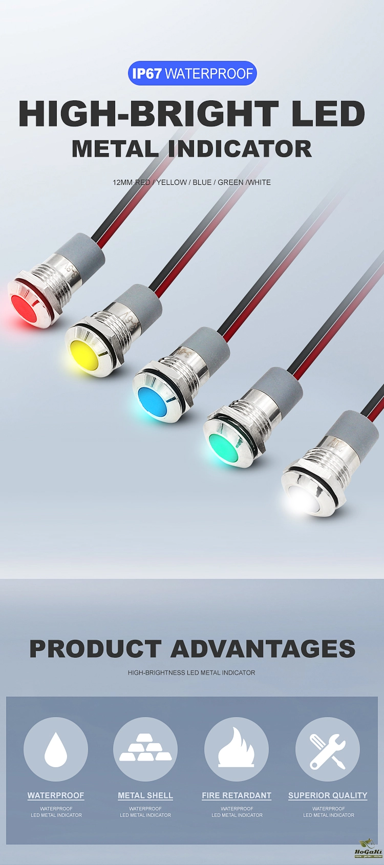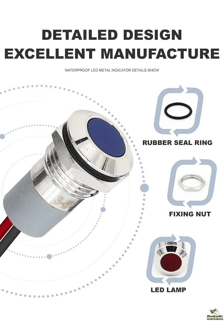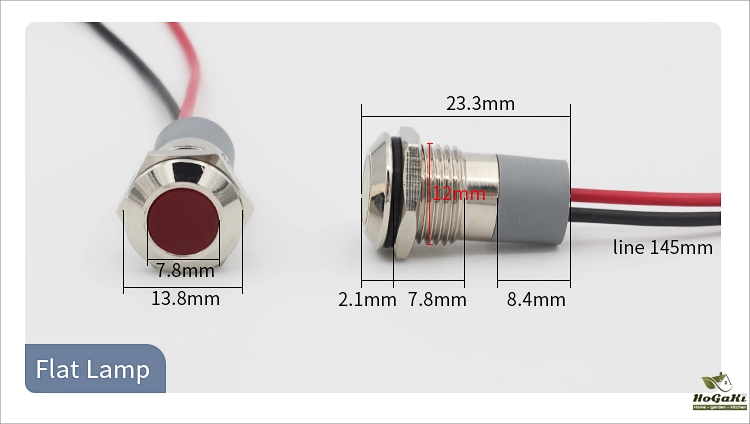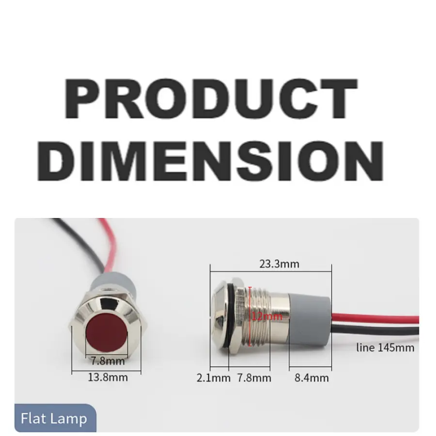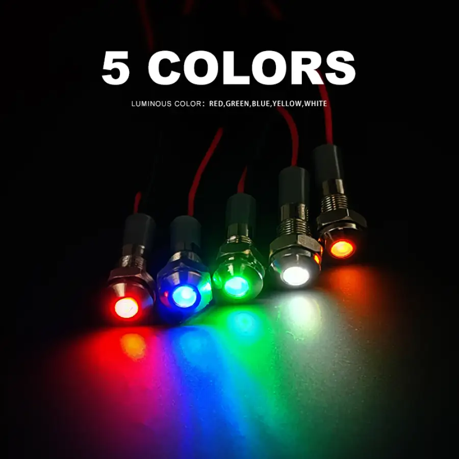 8mm 12V 24V 110V 220V Metal LED Pilot Panel Dash Signal Indicator Warning light 20cm cable Chrome Finish Car Boat Marine