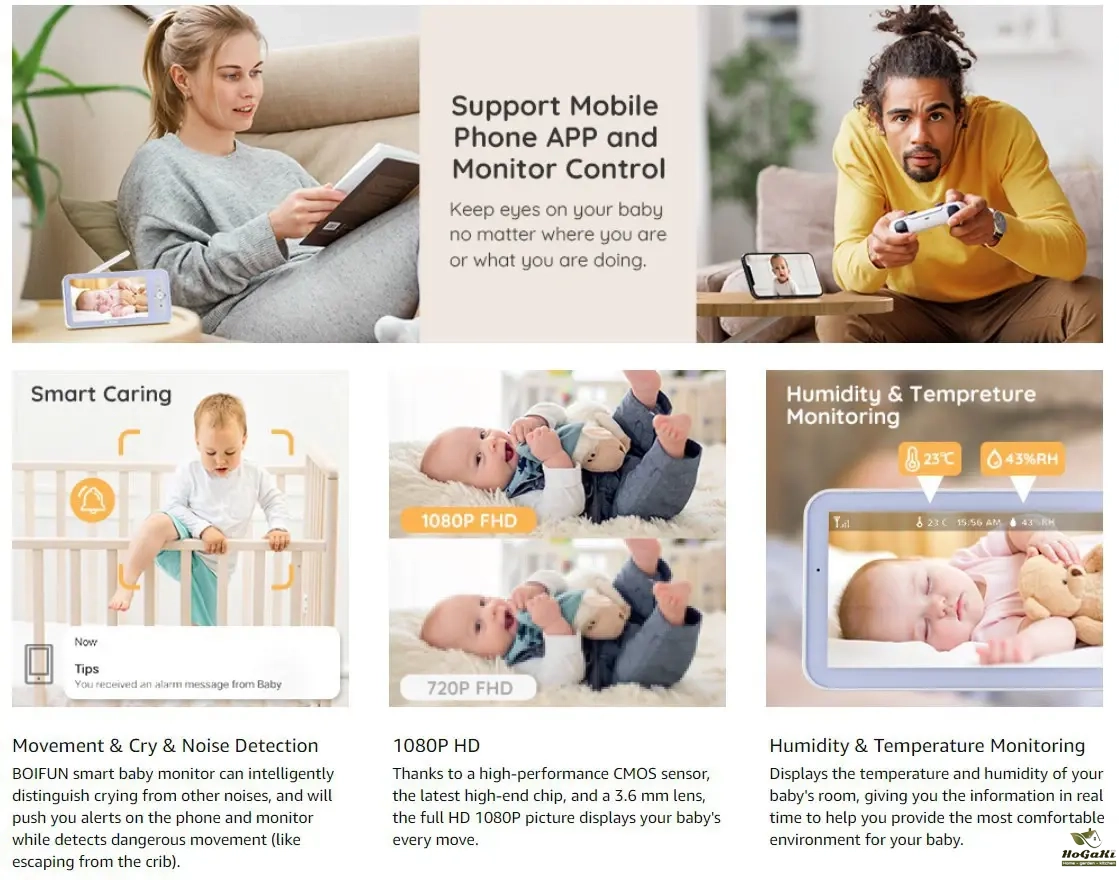 This baby monitor has a wealth of features, such as cry detection, motion detection, lullabies, two-way audio, which can effectively help you monitor your baby, support APP and monitor at the same time to view, real-time access to real-time situation of your baby, to provide better help when you are busy!