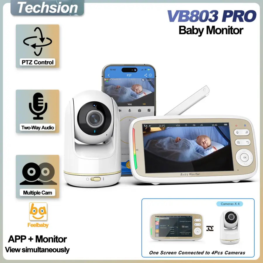 VB803 PRO HD 720P Baby Monitor Two Way Communication Smart Dual Control for Phone and Monitor Temperature Monitoring WIFI PTZ