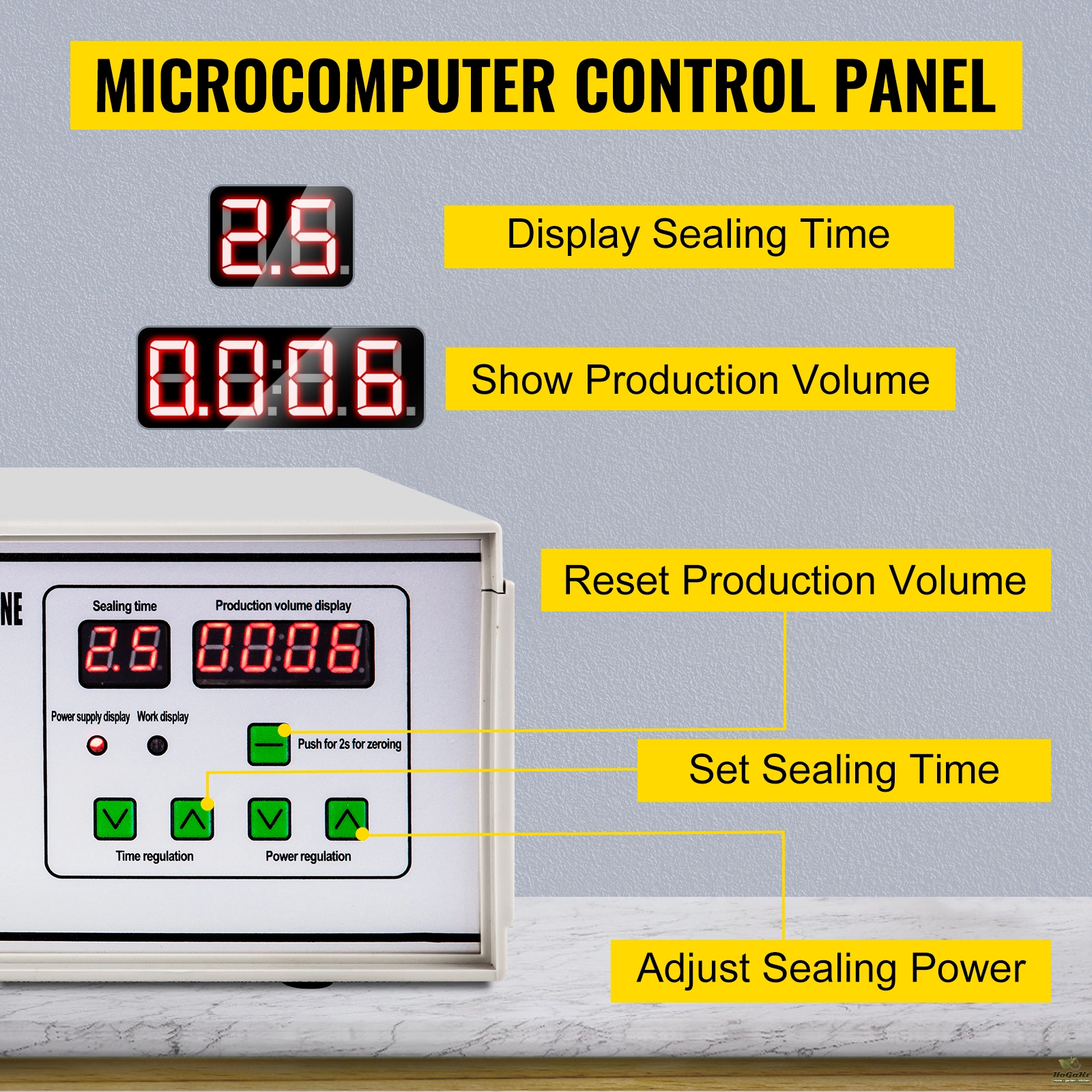 Digital Control: The electromagnetic induction sealing machine is operated through a simple control panel. You can easily adjust the sealing time and working power. It can achieve zeroing by pushing the zeroing key for 2 seconds. Besides, the sealing time and production volume can be visible through two displays.