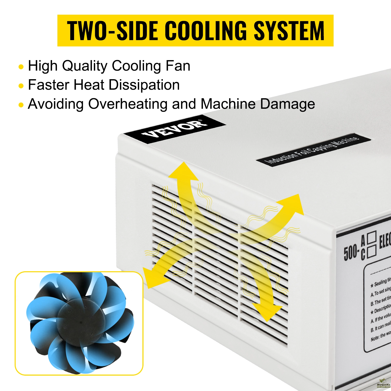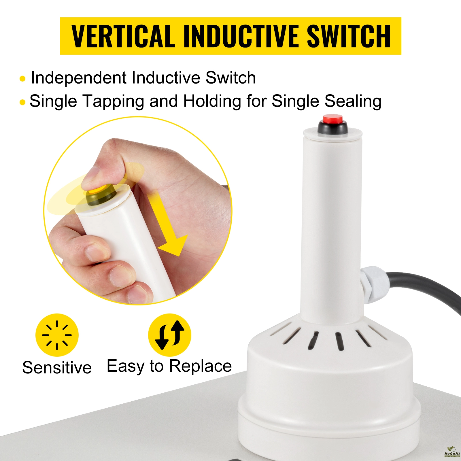 Security Protection: A separate power switch guarding against electric shock and is securer to use. The induction heat sealing machine features automatic overheating, over-voltage, and over-current protection functions. In addition, it is equipped with cooling parts to help heat dissipation.