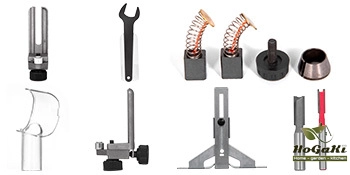 ·1 x Compact Router ·1 x Fixed Base ·1 x Tilt Base ·1 x Plunge Base ·1 x 1/4"(6.35 mm) & 3/8"(9.5 mm) Collets ·1 x Straight Edge Guide ·1 x Curved Edge Roller Guide ·1 x Dust Extraction Hood ·1 x Pair of Replacement Carbon Brushes ·1 x Collet Nut ·1 x Spanner Wrench ·1 x Set of Related Fittings