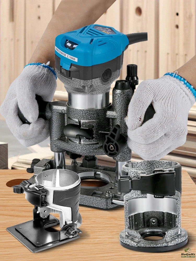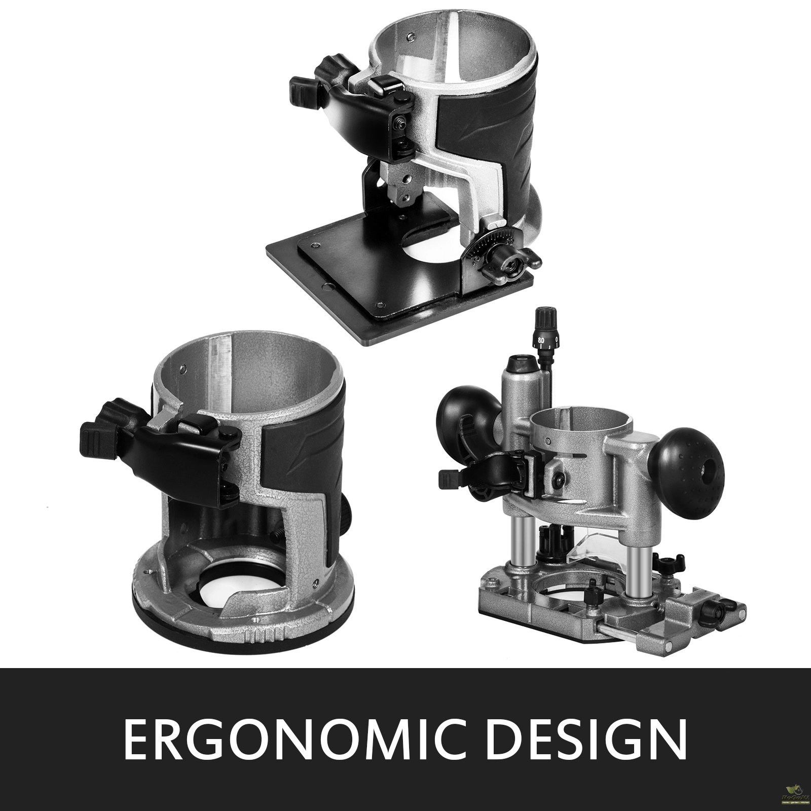 Powerful 700W compact router delivers excellent power to meet variety applications, heavy-duty cast aluminum motor housing, fixed base, Voltage: 110V/220V 50HZ/60HZ.