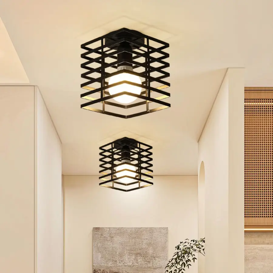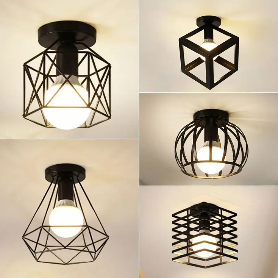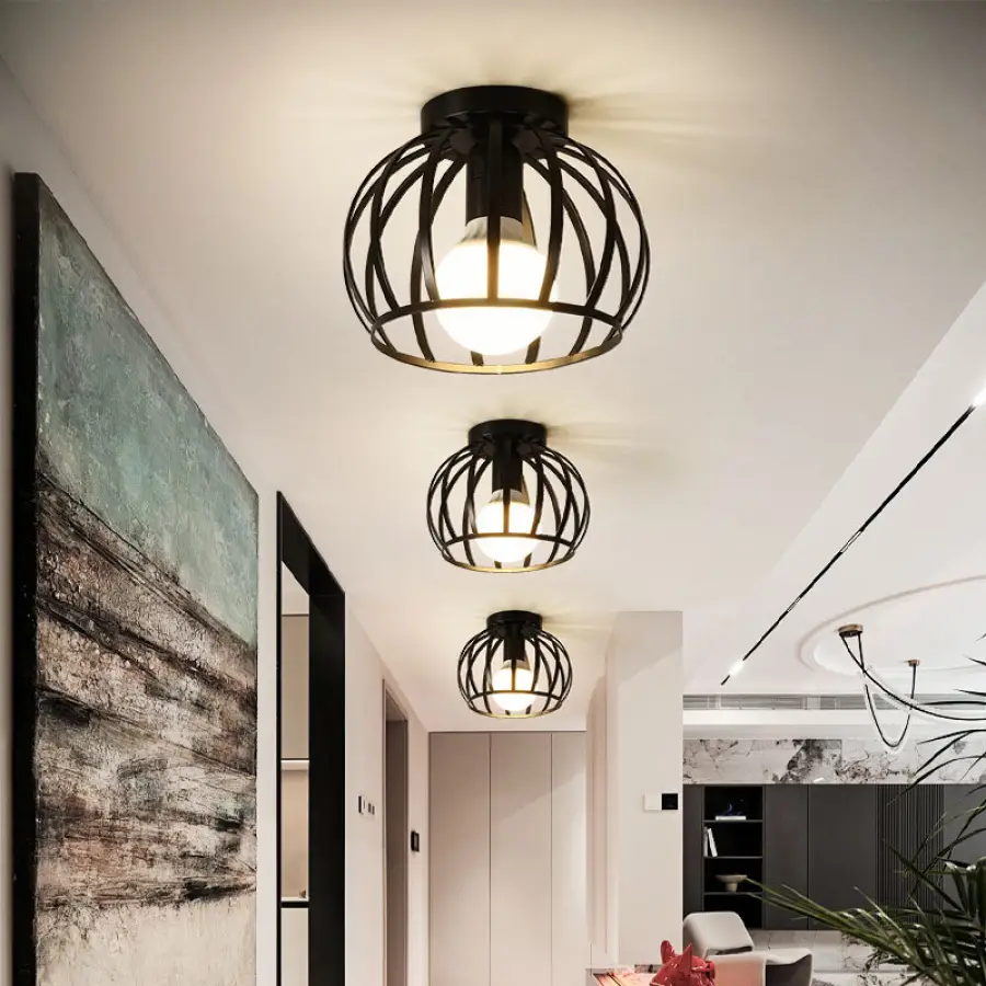 Nordic E27 Ceiling Light Ceiling Lamps For Corridor Foyer Aisle Living Room Black Metal Retro Industrial Style Chandelier Lighting