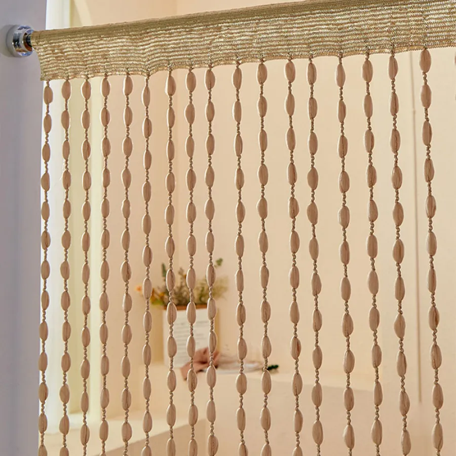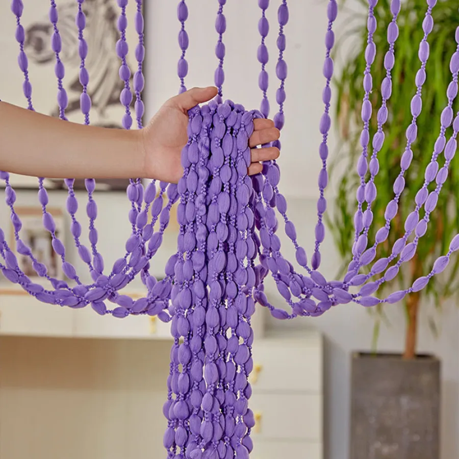 The linear curtains are hung with rods and the density can be adjusted according to your personal preference. If you prefer a more dense style, please purchase 2 or more. The material of the string curtain is polyester fiber. After you unpack it, there will be an odor of polyester fiber. If you mind this odor, please keep the room ventilated during the initial use. After hanging the product, the odor of the product will diminish with time of use.