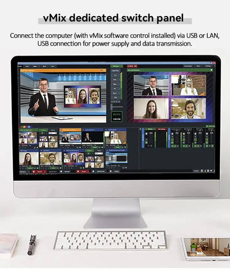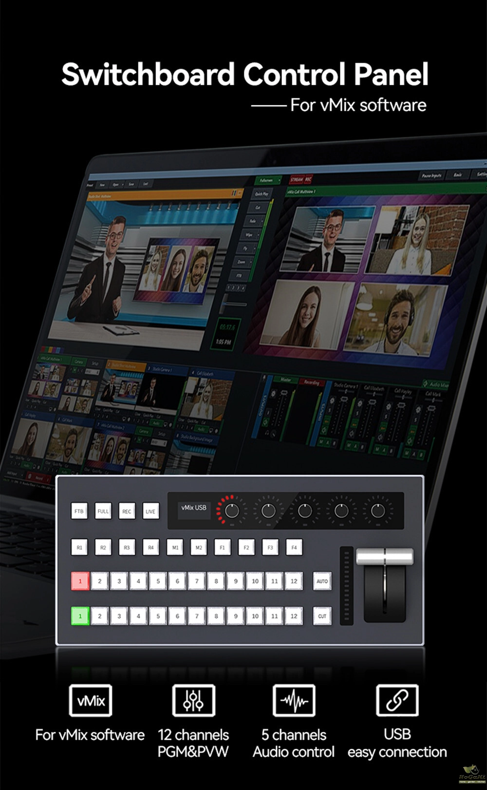 Compatible with plenty of live broadcast software:It also supports MIDI protocol,compatible with Vmix and other various live broadcast software.Complete the control of functions such as directing, transitions, tuning, one-key black screen, etc.,multi-purpose machine is more worry-free.