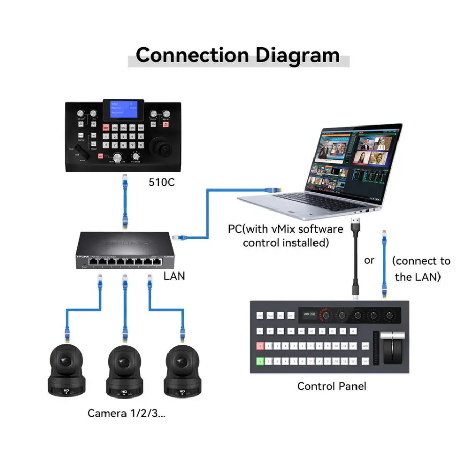 USB 2.0, LAN dual interface connections, simple and convenient:Supports LAN and USB 2.0 drive-free connections , and can transmit video signals to computers and live videoproduction software without a capture card, simple and convenient.