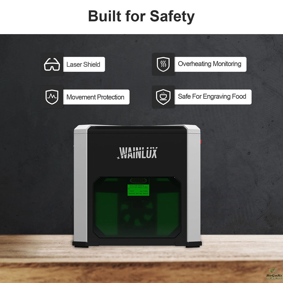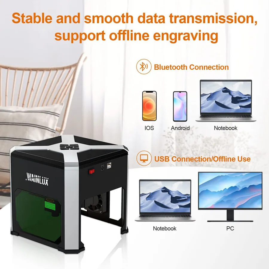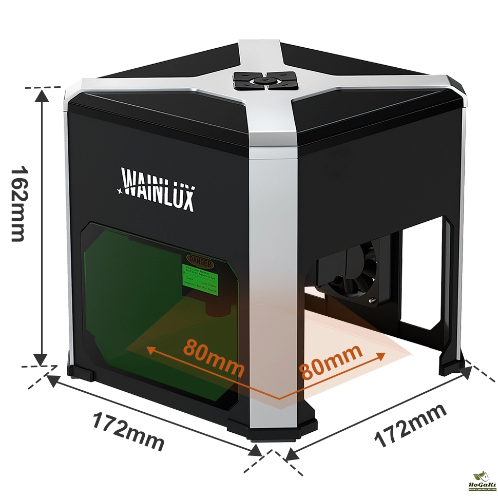 3. Durable Design: this is a mini laser engraving machine with a closed and hidden body design. It’s the perfect portable art studio which you can bring it to anywhere! Built-in protective lenses to reduce harmful blue light from lasers enable you to safely observe the engraving process without harm to your eyes by using the proper eye protection. The built-in exhaust van stops any smoke from the engraving process from affecting the final design and helps to dissipate heat.
