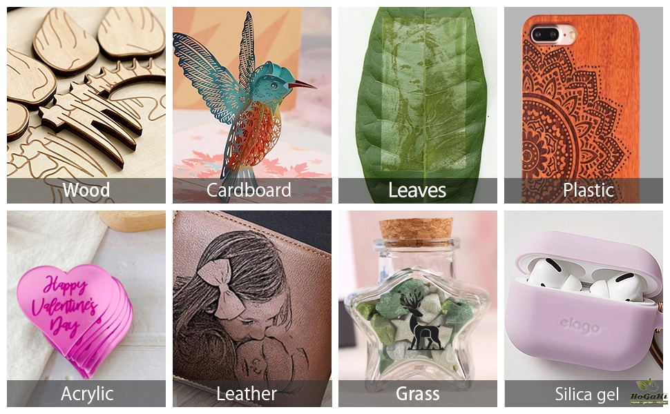 This mini portable laser engraver is equipped 3W laser head, which can carve various objects in daily life, like breakfast bread/bookmark/kraft magazines/cups and so on, besides, cut below 2mm thickness wood/paper also like a peice of cake, look around from your side, customized personalized items