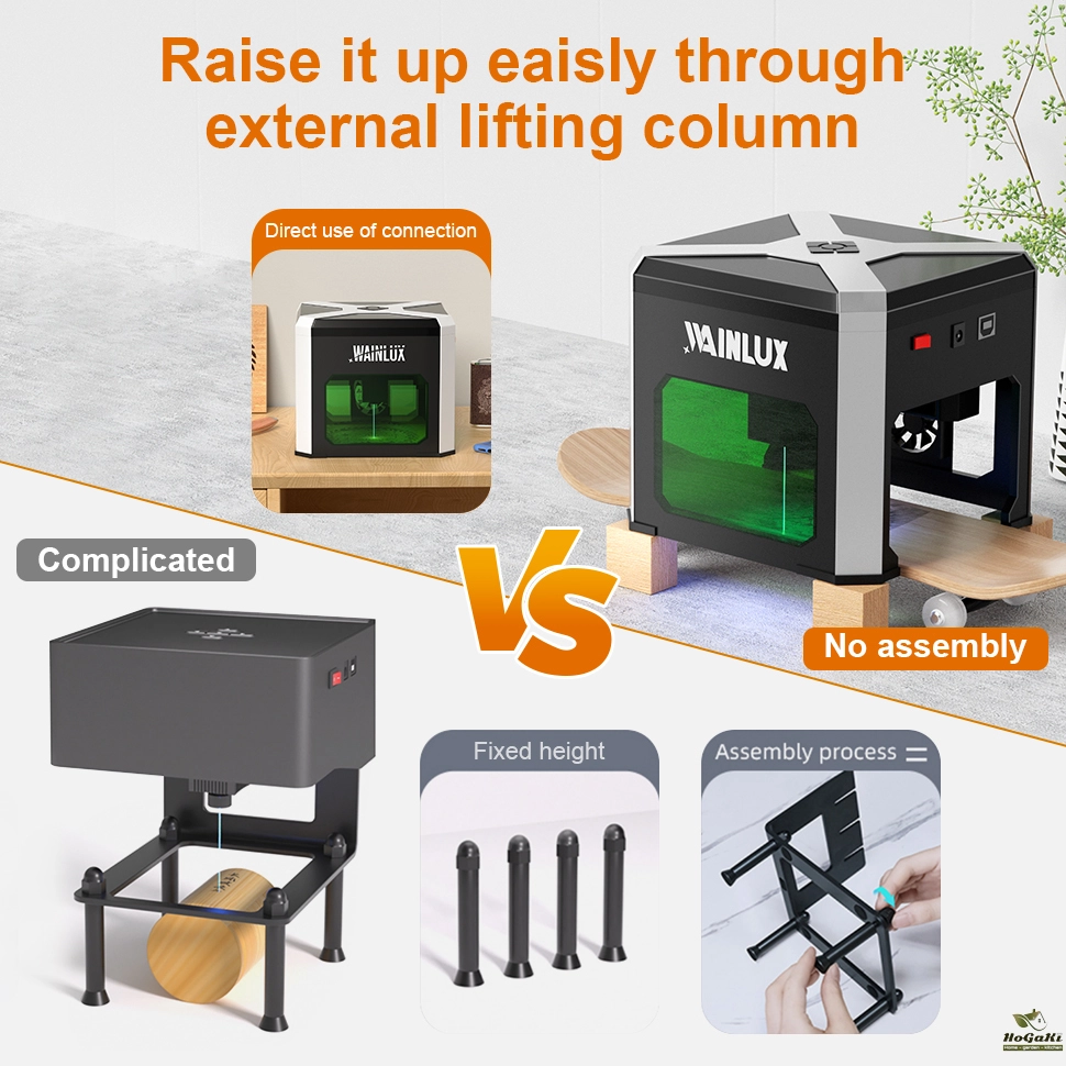 In order to adapt to the engraving of taller and larger objects, the K6 model can also be easily realized by adding bottom pads at the four corners of the bottom. For objects of different heights, you can choose a bottom pad of a suitable height to meet your daily needs. no need repeated disassembly, reduce the damage to the machine, and the integrated structure is strong stable, thus engraving more smooth ,with no shaking, presenting a better engraving effect