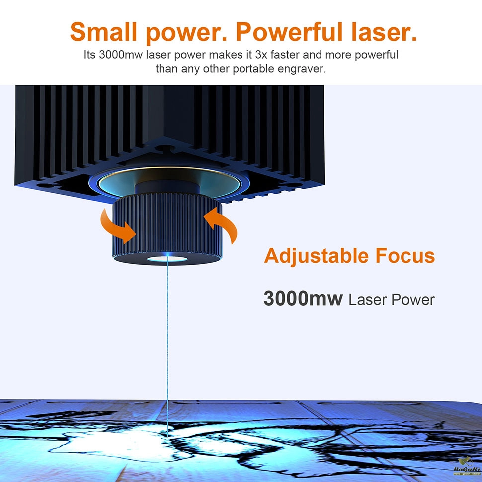 1. Small Size, Powerful Laser: Its 3000mW laser power makes it faster and more powerful than other portable engravers. It makes engraving on harder surfaces a breeze! Engraving materials include cardboard, wood, leather, cloth, bamboo, plastic, acrylic, cut paper, or other flammable materials (such as mobile phone cases, mice, business cards, wallets, glass must be sprayed with paint, etc.). Note: Metal, stainless steel, crystal and gem or jewelry are can not be engraved.