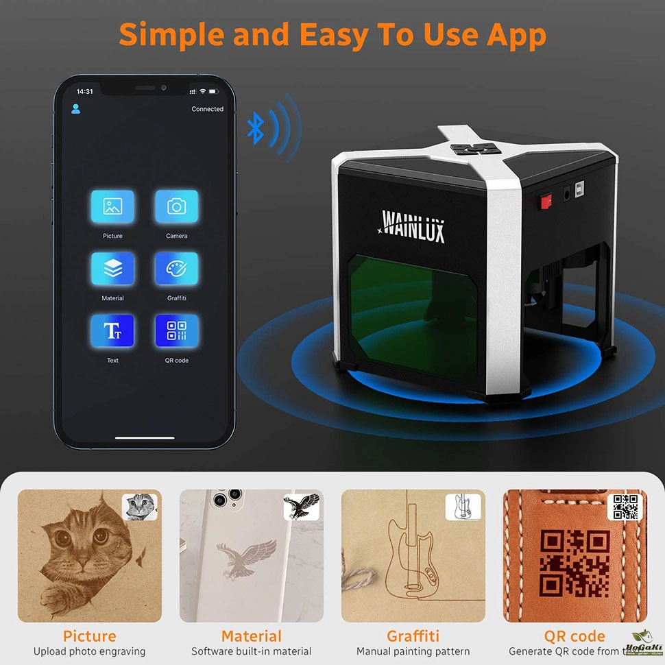 4. Easy-To-USE & Engrave Safely: K6 mini laser engraver provide a preview of your image on the surface before engraving! It displays the planned size of the engraving, making it super easy to see where your finished project will be located. Movement Protection & Overheating Monitoring: When you are engraving, If the inner temperature approaches its heat threshold or an accidental movement is noticed during operation, it will shut down immediately to ensure the safety of users and equipment.