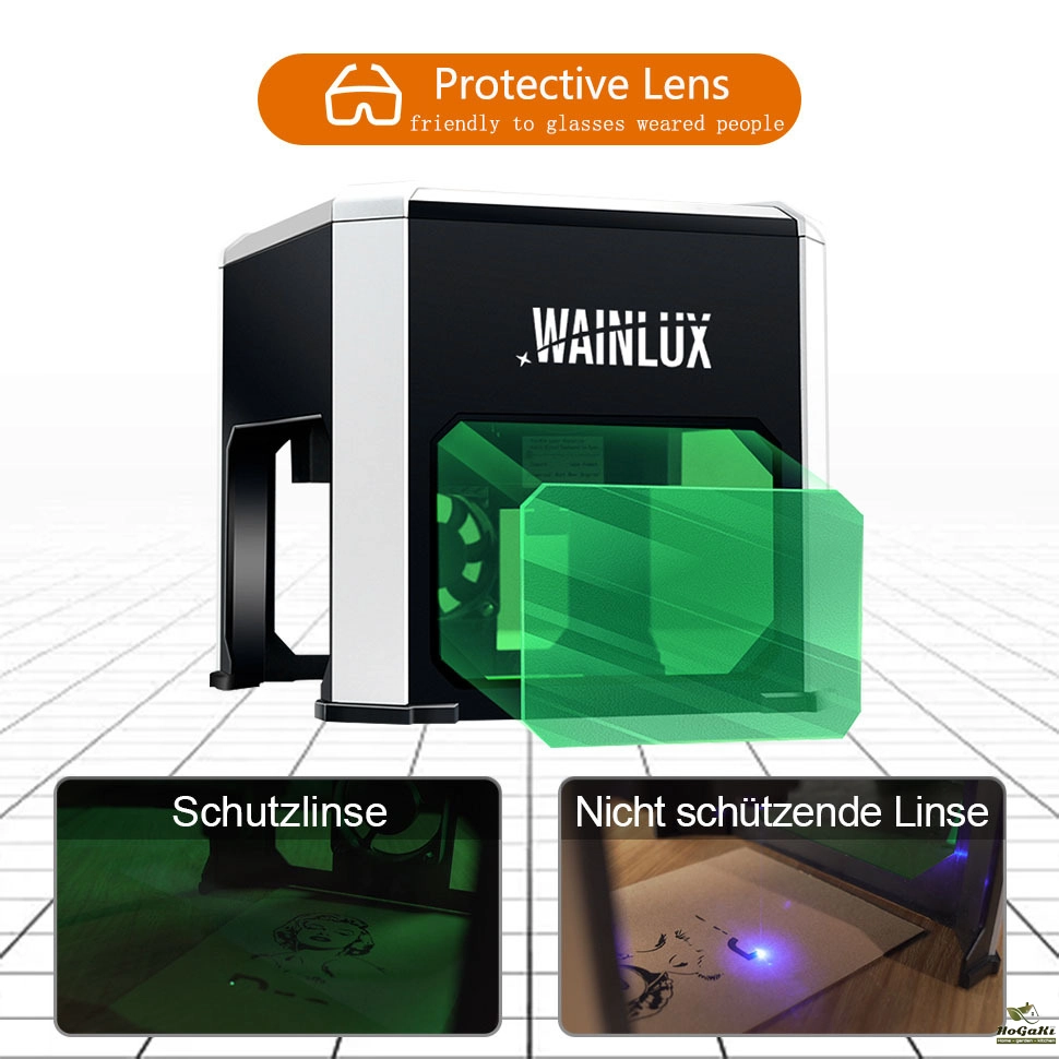With preset eyes-protective lens, can block 97% of laser strong brightness light directly with no goggle needed, preventing eyes burn, this design also is kindly for glasses-wearing people, get more convenient carving experience