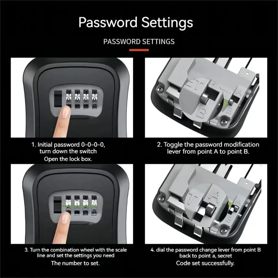4. dial the password change lever from point B back to point a, secret Code set successfully.