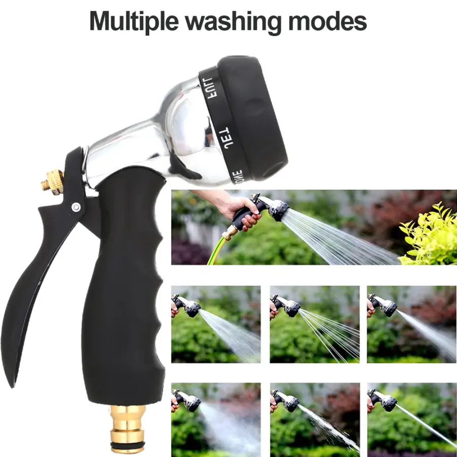Feature: 1. Durable Material: Sprinkler Gun is super-heavy, made of zinc alloy body, which can prevent leakage, rust and wear, and is very durable. 2. Suitable for All Garden Hoses: Portable Water Gun is suitable for all standard garden hoses and all EU-based garden hose 3/4 "G garden hose threads. No adapter is required! 3. 7 kinds of Spray Settings: The Watering Irrigation Tool provides 7 different water spraying modes for easy use. Easily change between center, plane, cone, angle, shower, spray, and spray settings as needed. 4. Easy to Grasp: The Watering Hose Nozzle has anti-skid ergonomic design, soft rubber handle, which is very suitable for hands, easy to operate and operate. 5. Widely Used: Hot Pipe is very suitable for watering your garden, lawn, lawn and flower bed. It is also very suitable for cleaning your car, dog and pet. Specification: Origin: Mainland China Type: Watering Kits Material: Metal Model Number: Water Spray Gun Material: zinc alloy+rubber Color: black+silver Size: about 18*11*5cm/7.0*4.3*1.9in Note: Due to the different monitor and light effect, the actual color of the item might be slightly different from the color showed on the pictures. Thank you! Please allow 1-2cm measuring deviation due to manual measurement.