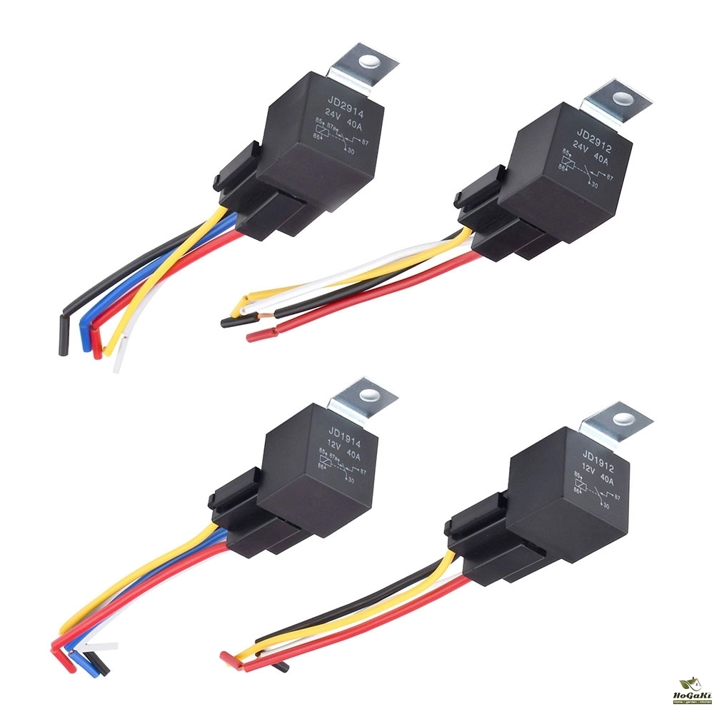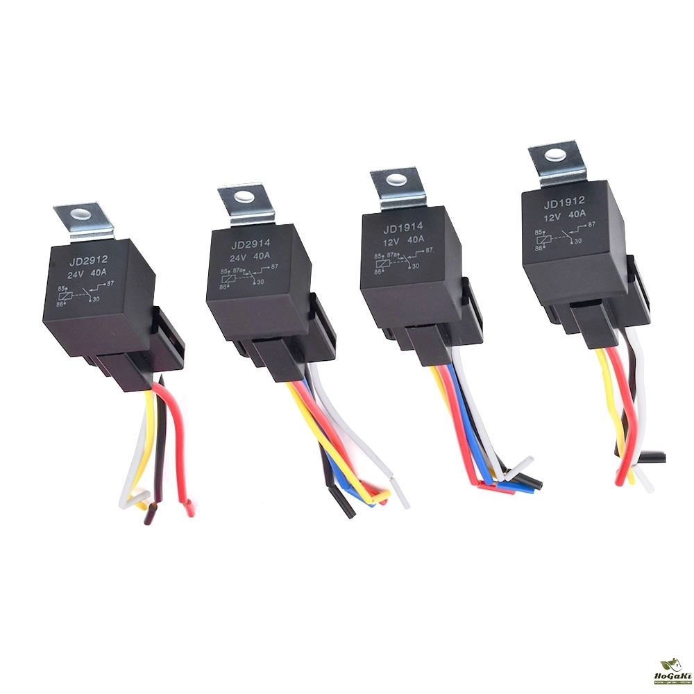 Waterproof Automotive Relay 12V 24V 4Pin 5Pin 40A Car Relay with Black Red Copper Terminal Auto Relay with Harness Relay Socket